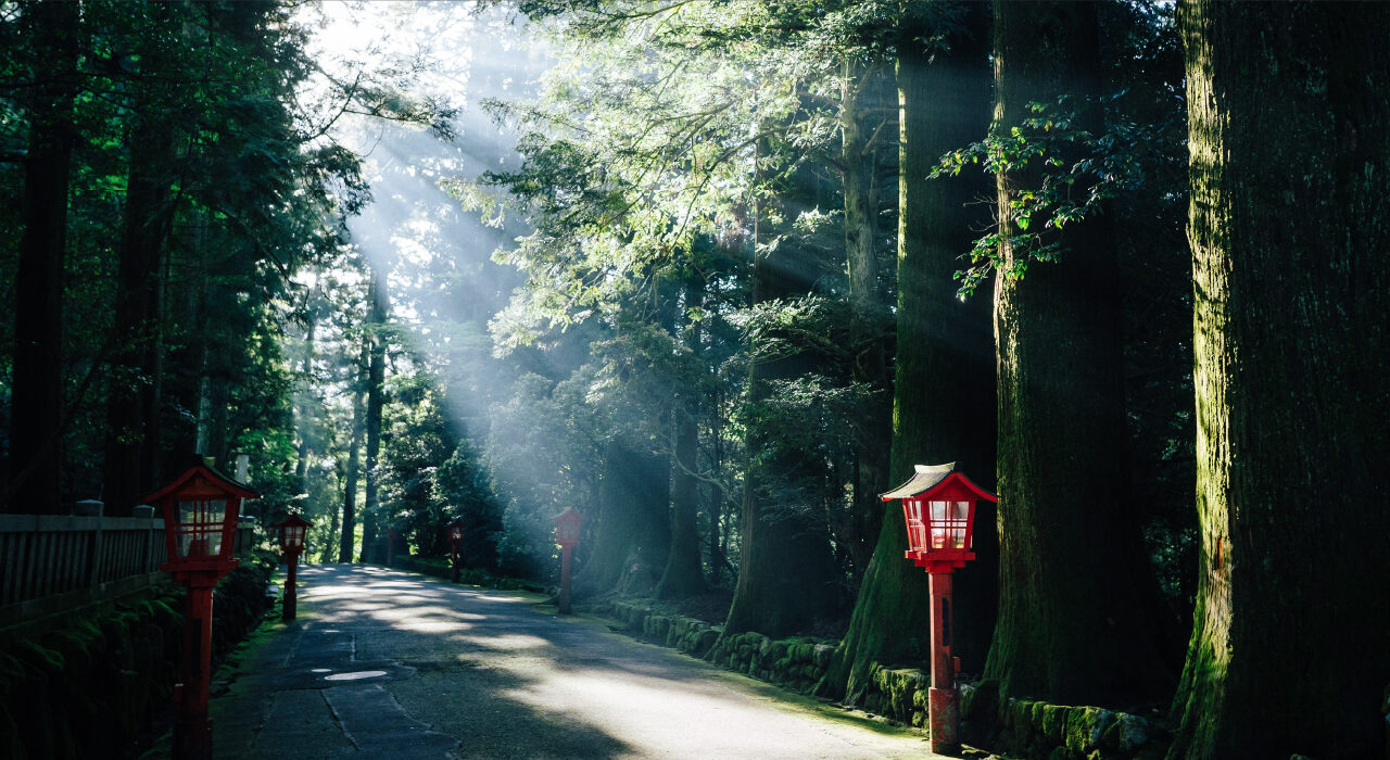 全国でも珍しい県境の位置する神社として知られています